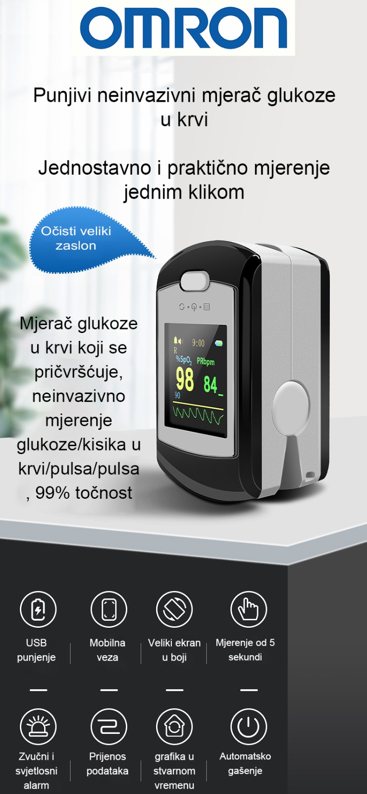 Omron neinvazivni mjerač glukoze u krvi (mjerenje za 5 sekundi, točnost 99%)