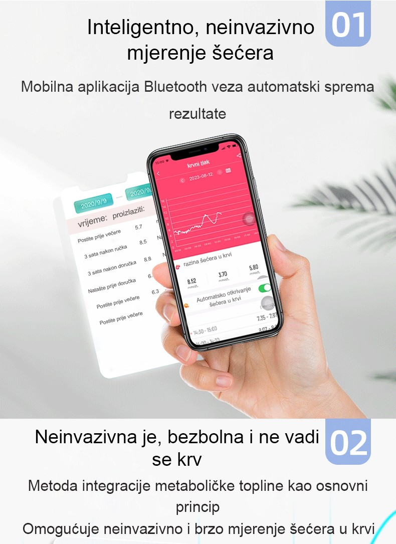 Top1 Neinvazivno mjerenje glukoze u krvi + neinvazivno mjerenje razine kisika u krvi + neinvazivno mjerenje mokraćne kiseline + neinvazivno mjerenje otkucaja srca + neinvazivno mjerenje krvnog tlaka