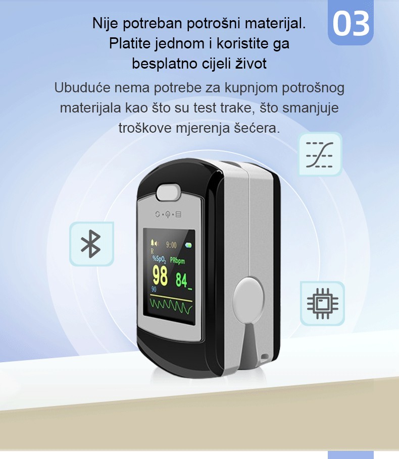 Mjerenje od 5 sekundi/99% točnost/bezbolno/bez vađenja krvi